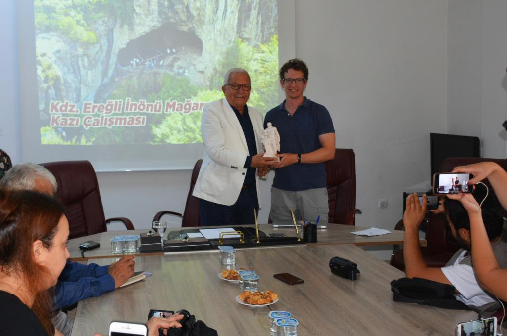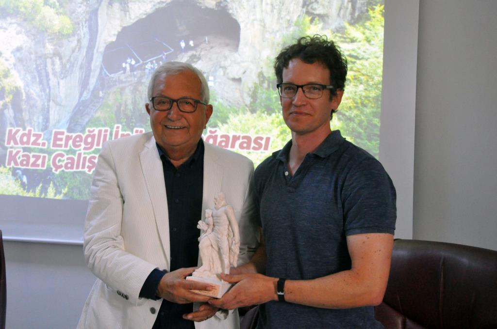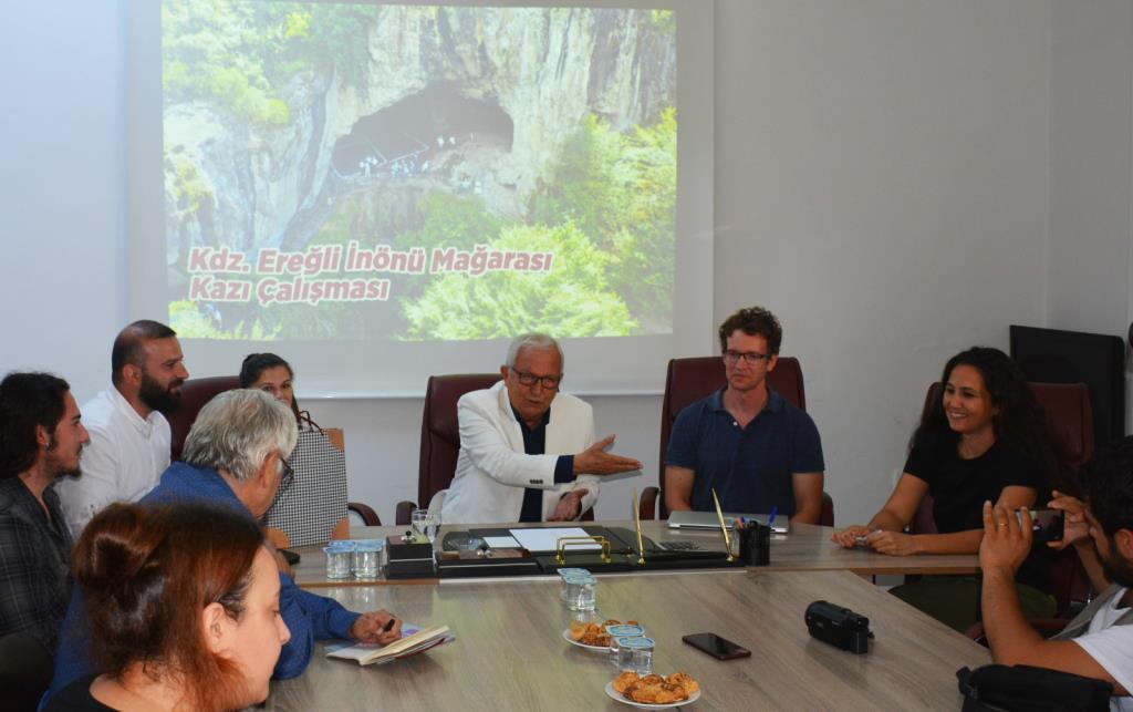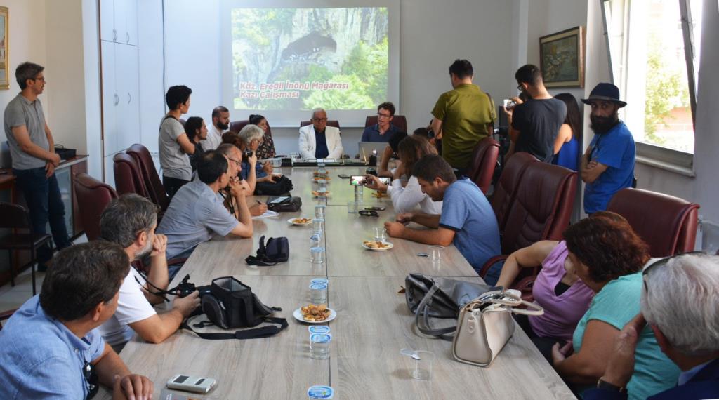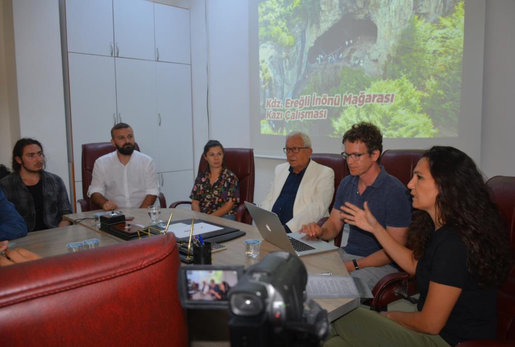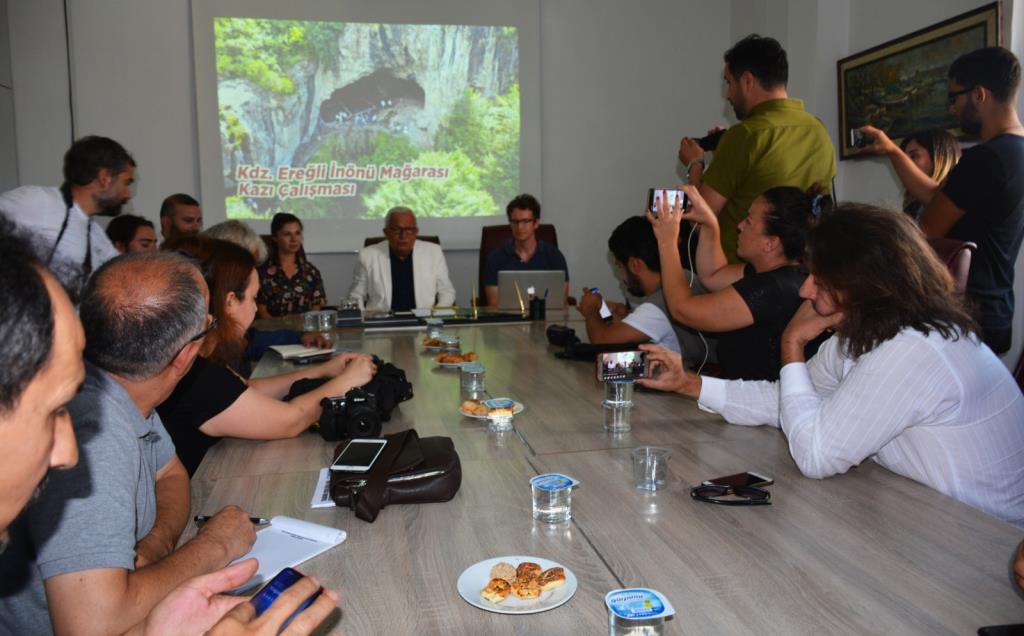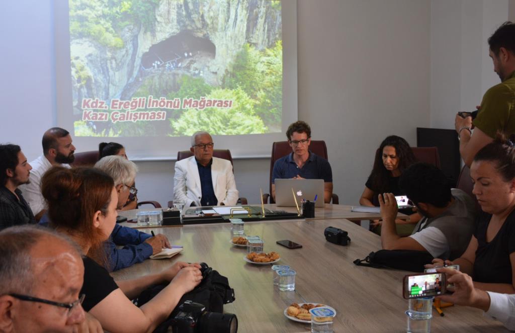 Kdz. Ereğli Alacabük Köyü sınırları içindeki İnönü Mağarası’nda yürütülen çalışmalar yeni bir boyut kazandı. Mağarada yürütülen kazı çalışmalarına katılmak için Amerika’dan Ereğli’ye gelen ve dünyadaki hayvan kalıntılarını inceleyen 5 profesörden biri olan Harvard Üniversitesi Öğretim Üyesi Zooarkeolog Benjamin Arburckle, Belediye Başkanı Halil Posbıyık’la birlikte düzenlediği basın toplantısında elde ettikleri hayvanlara ait önemli bulguları açıkladı.