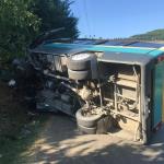 Yolcu minibüsü; Mollabey istikametinden gelen Mehmet M. yönetimindeki 67 SK 549 plakalı bir otomobile çarparak kavşakta yan yattı. Kaza sonrası olay yerinde büyük panik yaşanırken, her iki araç içerisinde yaralanan şoförlere ilk müdahale yoldan geçen araç sürücüleri tarafından yapıldı. Kazada, minibüs şoförü Muharrem D., otomobil sürücüsü Mehmet M. hafif şekilde yaralandı.