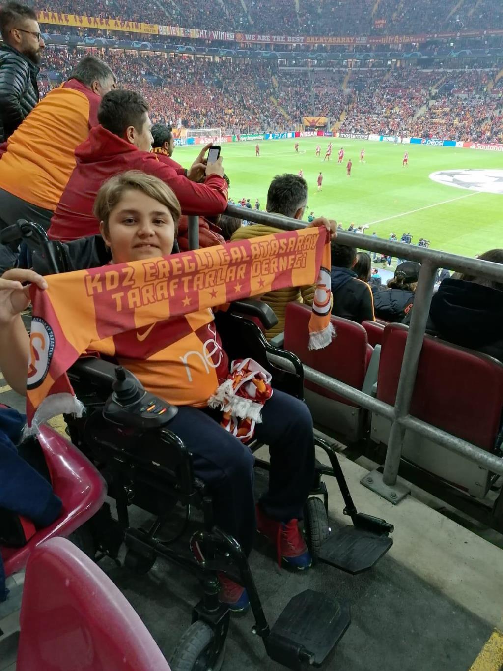 Zonguldak Ereğli Galatasaray Taraftarları Derneği engelli 1’i çocuk 2 kişinin en büyük hayali olan maç atmosferini yaşattı.
