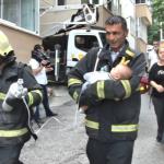 Karabük’te apartmanın 1. katında çıkan yangındaki dumandan etkilenen 3.5 aylık bebeği dışarı çıkaran itfaiye eri bebeği kucağında ambulansa taşıdı.