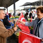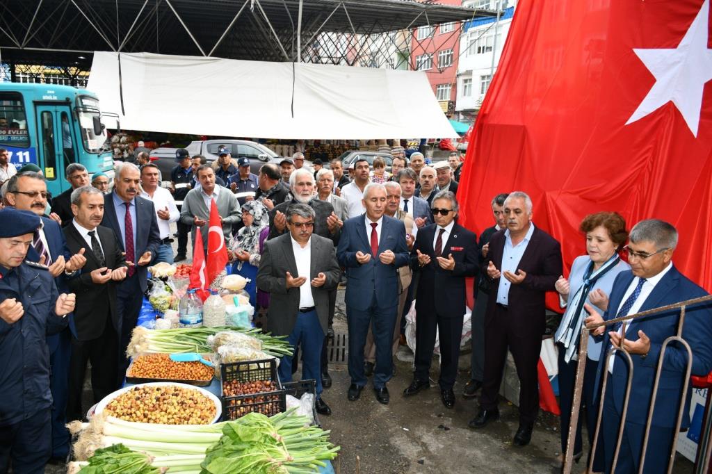 Yapılan protokol konuşmalarının ve duanın ardından Karabük Valisi Sayın Fuat Gürel, Karabük Belediye Başkan Yardımcısı Seher Berker, Karabük Sebzeciler, Balıkçılar, Kasaplar ve Pazarcılar Esnaf Odası Başkanı Cuma Kara ve protokol üyeleri tarafından Cuma Pazarındaki esnaflara ve vatandaşlara Türk bayrağı dağıtıldı.