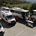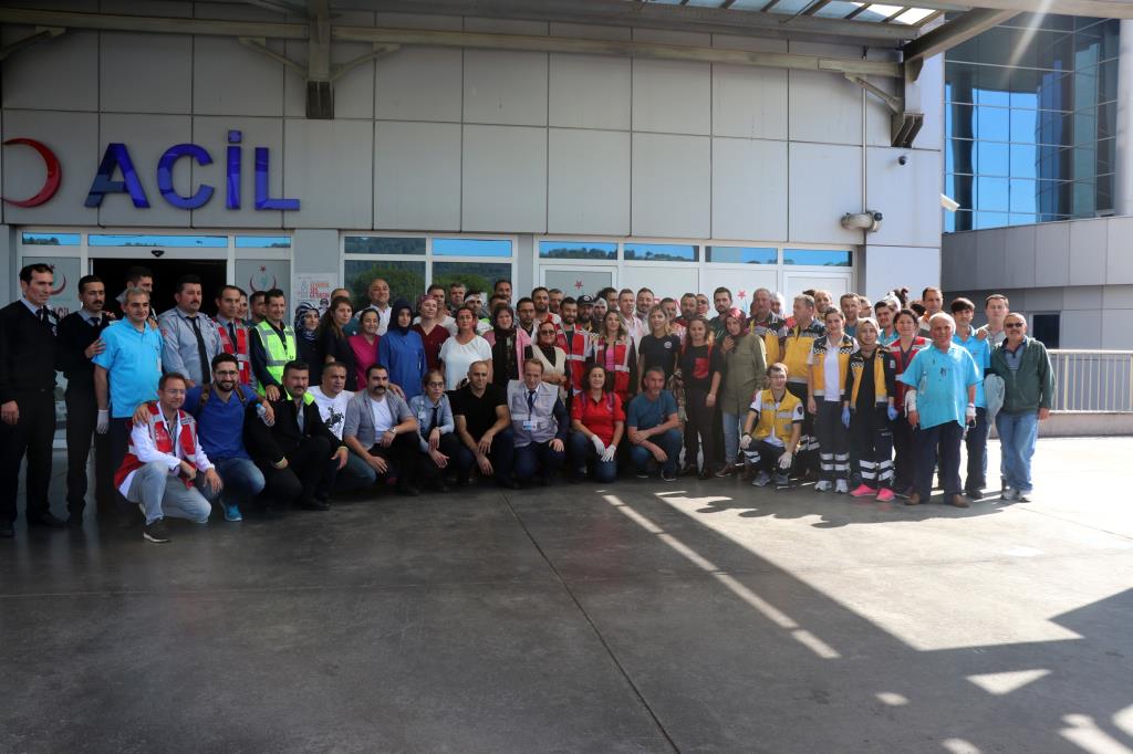 Biz de bölgemizde meydana gelen bir trafik kazası nedeniyle hastanemize kısa sürede çok fazla yaralı getirilmesini konu edinen tatbikatımızla hastanemiz acil servisi başta olmak üzere tüm tetkik tanı ve tedavi birimlerinin kapasitelerini ve birimler arasındaki koordinasyonda meydana gelebilecek aksaklıkların tespitini hedefledik. Tatbikatı başarı ile tamamlayan tüm personelime desteklerini bizden esirgemeyen AFAD, UMKE,112 Ambulans Komuta merkezi birimlerine, İtfaiye ve Emniyet mensuplarına ayrıca siz değerli basın mensuplarına teşekkür ederim" dedi.