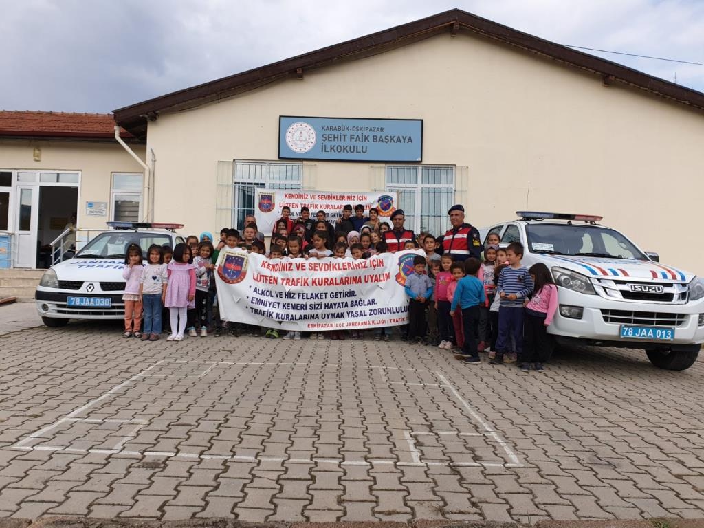 Jandarma ekipleri, eğitimlerini Eskipazar Üçevler Ortaokulunda sürdürerek öğrencilere trafik eğitiminin yanı sıra meslek tanıtım semineri de verdi. Trafik eğitiminde öğrencilere, trafikte uyulması gereken genel hususlar, trafik ışık, işaret ve levhaları, yaya yolları, öğrenci servislerine inme-binme, okul servis güvenliği, karşıdan karşıya geçme, emniyet kemeri önemi ile genel trafik kuralları ile ilgili bilgiler verildi. Jandarma trafik ekipleri öğrencilerden her zaman trafik kurallarına uymalarını, araçların geçtiği yollarda dikkatli olmalarını, yürürken mutlaka yaya yolunu kullanmalarını, trafik ışık, işaret ve levhalara uymalarını istedi.
