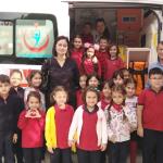 Yapılan toplantının ardından ATT Oya Çakır Mutlu, öğrencilere ambulansın içinde kullanılan malzemeler hakkında, ambulans şoförü Nazif Bıyıklı ise, trafikte bulunduğu esnada ambulanslara yol vermenin önemini anlattı.