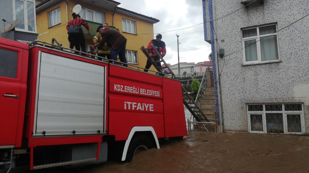 Zonguldak’ın Ereğli ilçesinde gece saatlerinden itibaren başlayan ve sabaha karşı şiddetini attıran sağanak yağmur sonrasında taşan Kabasakal deresi evleri ve iş yerlerini bastı. İtfaiye ve polis ekipleri teyakkuza geçerken evlerde mahsur kalan yaklaşık 45 kişinin ve birçok aracın kurtarıldığı öğrenildi.