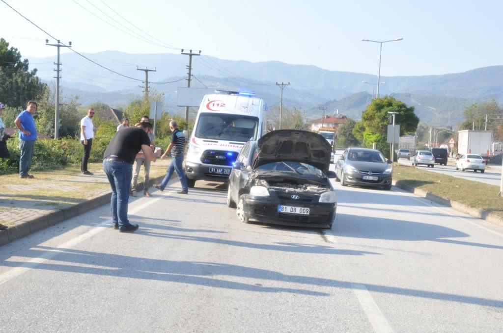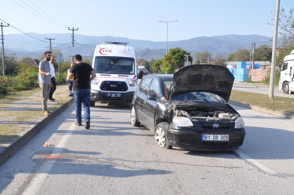 Kaza Akçakoca mahallesinde meydana geldi. Alınan bilgilere göre Zehra Işık’ın kullandığı 81 DB 009 plakalı otomobil, sürücüsünün park halinde ki araca çarpmamak için direksiyon hâkimiyetini kaybetmesi sonucu karşı şeride geçerek ağaca çarparak durabildi. Kazada araç içinde bulunan salça şişinin kırılması ile ön cam salça ile boyandı. Salçayı kan zanneden vatandaşlar büyük panik yaşadı. Sürücü Zehra Işık’ın aracın içinden çıktığını ve durumunun iyi olduğu gören vatandaşlar rahat nefes aldı. Kazadan sonra olay yerine gelen 112 ekipleri, sürücü Zehra Işık’ı tedavi altına aldı. Yaralı olmadığını beyan eden Sürücü Işık ambulanstan indikten sonra gazetecilere yaptığı açıklamasında “Aracı ben kullanıyordum: önümde duran araçtan kaçayım derken direksiyon hâkimiyetimi kaybettim” dedi.
