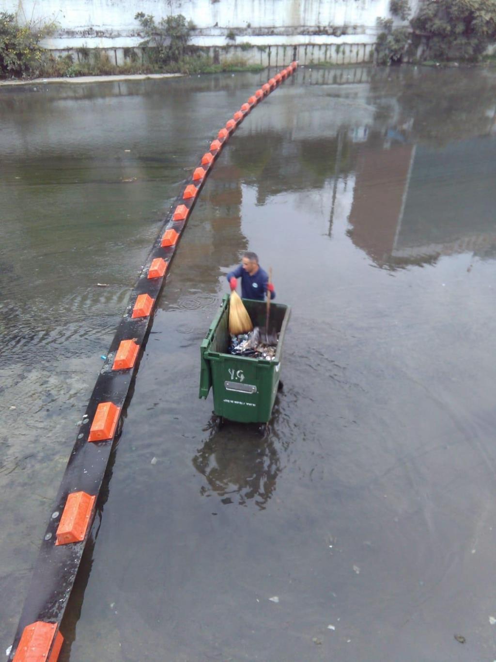 Zonguldak Limanı'na ulaşan evsel atıkların denizi kirletmemesi adına kurulan bariyer sistemi işlevini sürdürüyor. Belediye ekipleri, bariyere biriken çöpleri toplayarak temizledi.