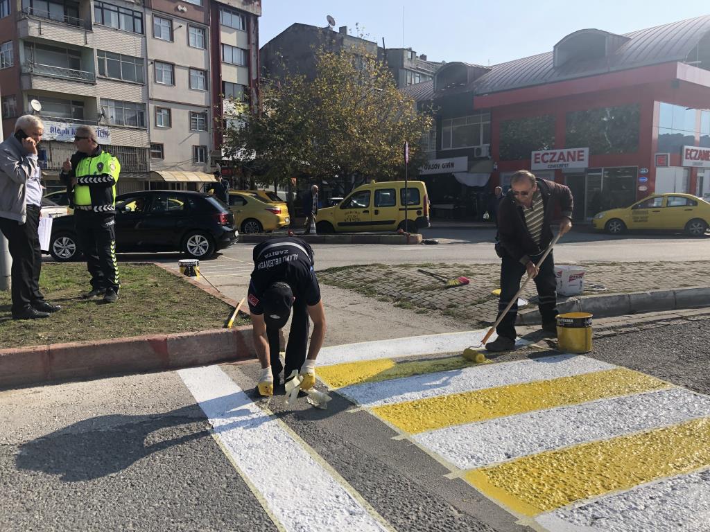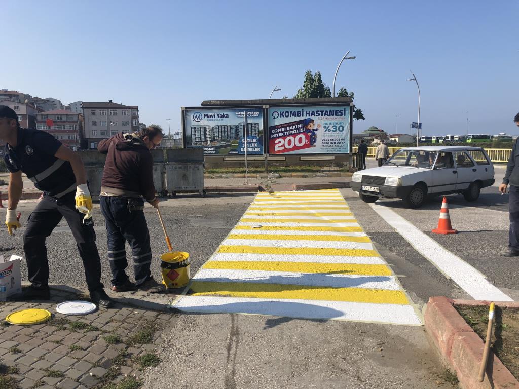 Alaplı Belediyesi ile Emniyet Müdürlüğü işbirliği ile yapılan , trafik akışında araç ve yaya güvenliğini sağlamak amacıyla vatandaşların yoğun olarak kullandığı yol ve güzergâhlarda ki kavşaklarda yaya çizgileri boyandı.