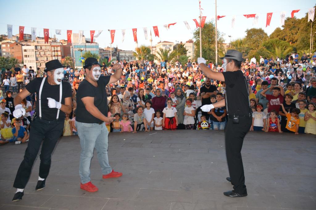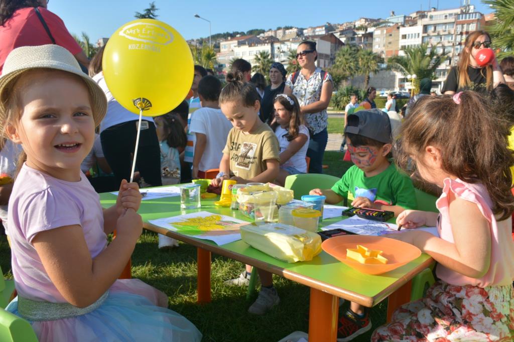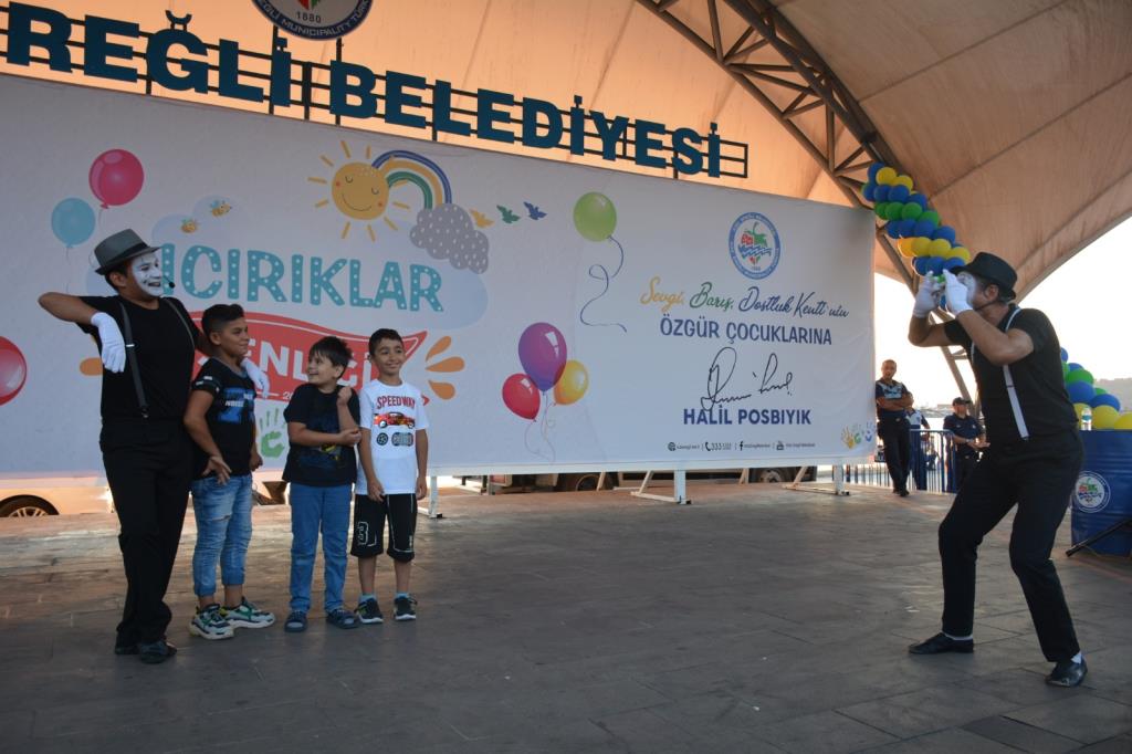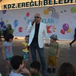 Amfi Tiyatro ve çevresindeki çimlik alan, Ereğli'nin renkleri olan yeşil mavi sarılar giymiş bıcırıkların atölye çalışmaları, şarkıları ve danslarıyla cıvıl cıvıl oldu. Kreşlerde olmayan çocukların da aileleriyle birlikte katıldıkları şenlikte Belediye Başkanı Halil Posbıyık eşi Neriman Posbıyık kızı Tuba Posbıyık Urcu ve torunlarıyla birlikte atölyeleri gezdi, çocuklarla birlikte eğlenceli dakikalar geçirdi.