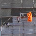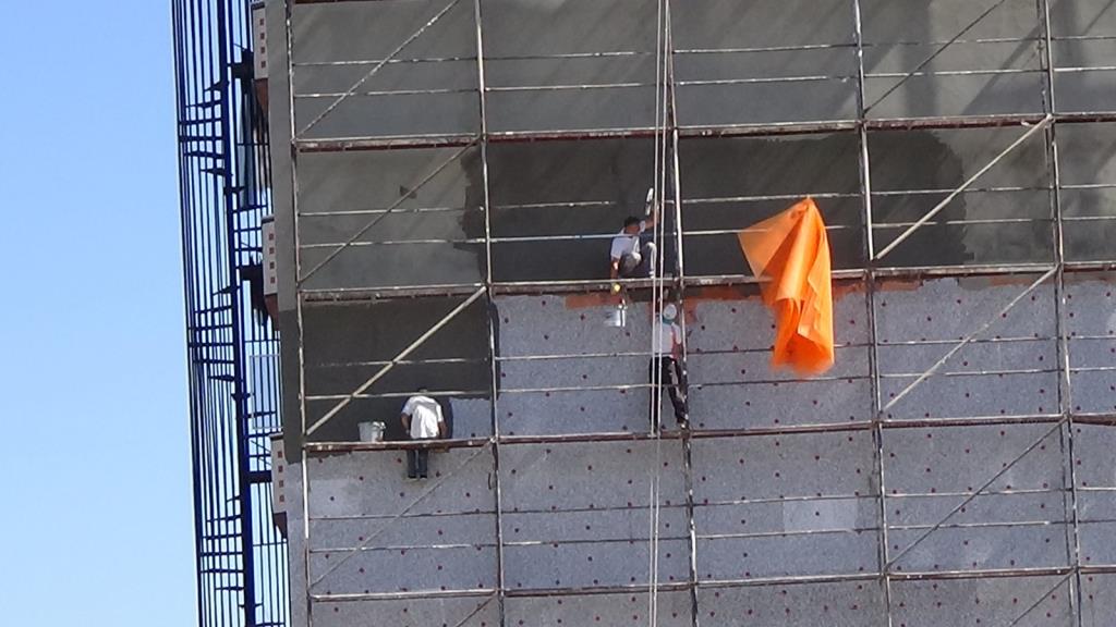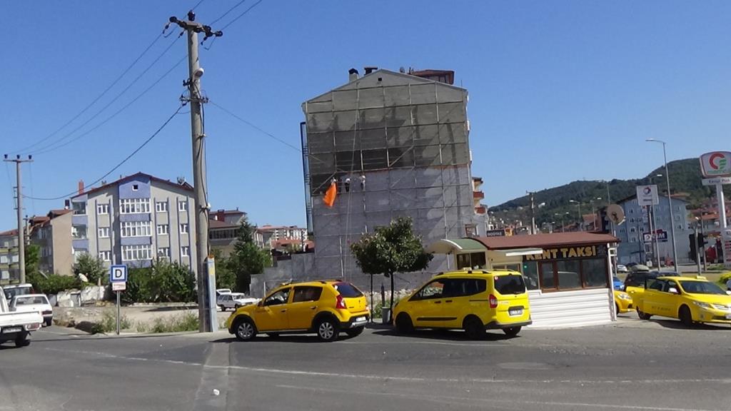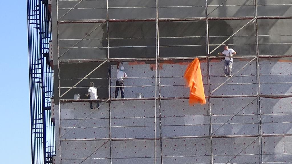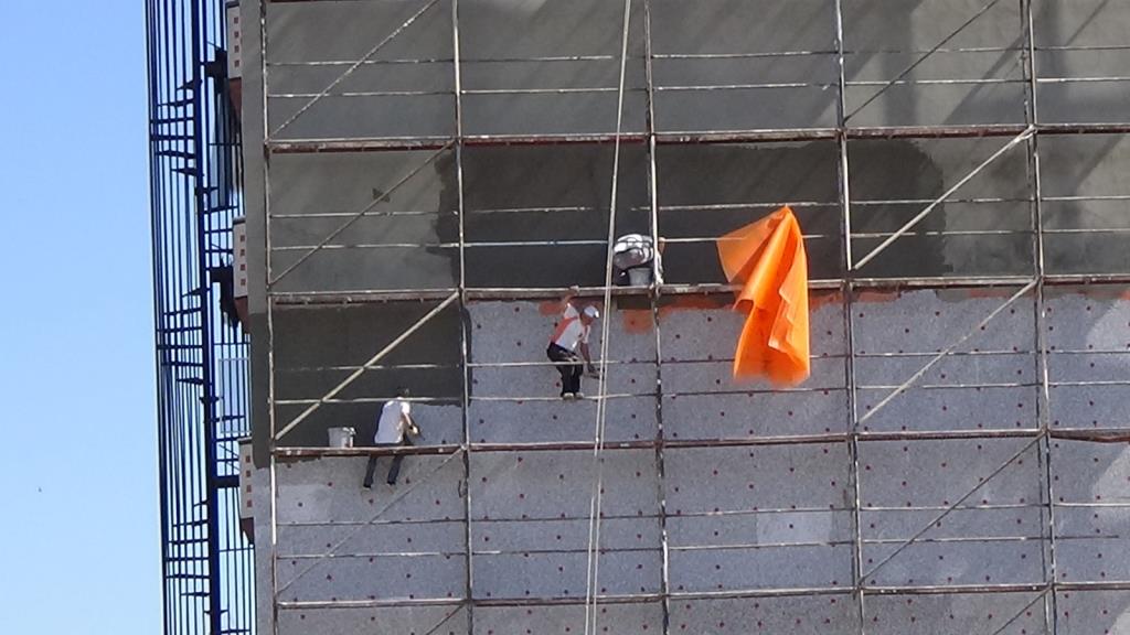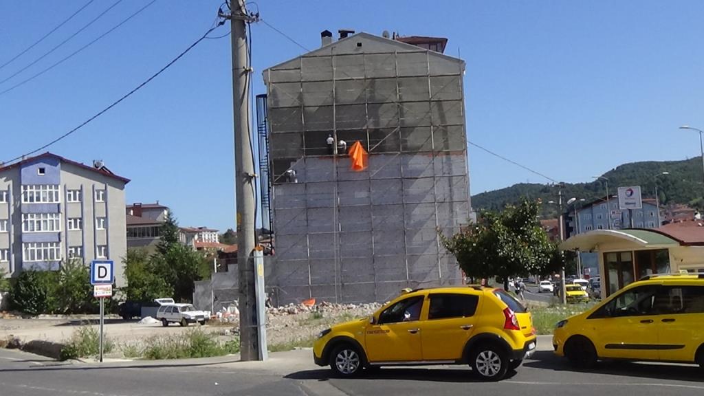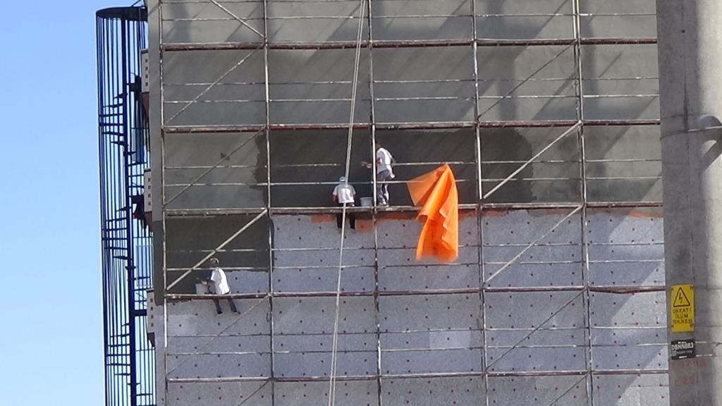 İlçeye bağlı Sarıkorkmaz Mahallesi Şehit Er Kudret Özcan Caddesi üzerinde 9 katlı binanın mantolama sıvasını yapan 3 işçinin hiçbir güvenlik önlemi almadan çalışması kameralara yansıdı. Katın sıvasını bitiren işçiler bir alt kata ise iskelenin demirlerinden adeta ölüme meydana okuyarak indi. Yaklaşık 25 metre yükseklikte emniyet kemeri olmadan ve hiçbir koruma malzemesi kullanmadan çalışan işçilerin bu hareketleri yürekleri ağızlara getirdi.