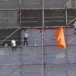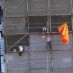 Zonguldak’ın Ereğli ilçesinde 9 katlı binanın mantolama sıvasını yapan işçilerin güvenlik önlemi almadan çalışmaları kameralara yansıdı. Adeta ölümle dans eden işçiler, iskeleden inişleri ise yürekleri ağızlara getirdi.