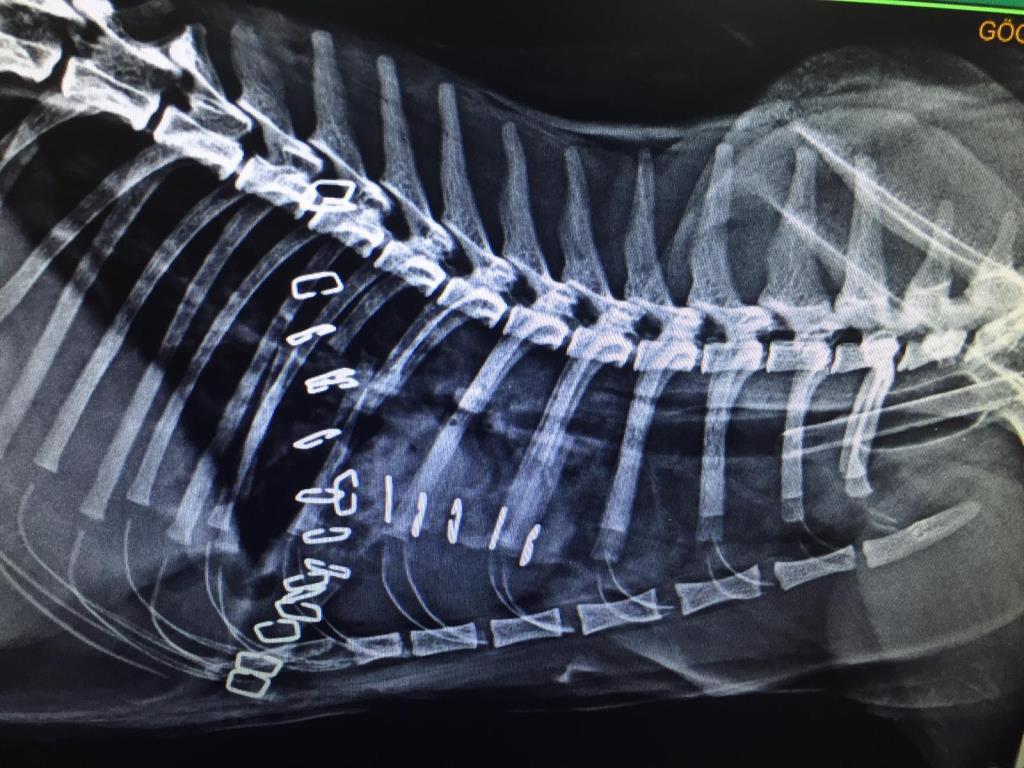 Veteriner Hekim Önder Alkan, ''Dün akşam Kastamonu ilinden geldi bize hastamız. Yaptığımız tetkiklerde soluk borusunda yabancı cisim tespit ettik akciğerin giriş bölgesindeydi kalbin üzerinde kötü bir solunumu vardı boğulmak üzereydi. Açık bir ameliyat geçirdi. Soluk borusundan bir taş çıktı. Zorlu bir ameliyattı 6 saat sürdü. Ameliyattan sonra solunumu düzeldi. Akciğerler düzeldi 3 günlük sıkıntılı bir durumu var. Oynarken muhtemelen oldu aşağıya kadar indi. Bir anda solunum güçlüğünden dolayı anlamış vatandaş ve hemen veterinere getiriyor ve yapılan tetkiklerde yabancı cisim görülüyor. Bu ameliyat için otomatik solumun sistemi gerekiyor. Bu sistem olan yerlerde bu ameliyatlar yapılıyor. Zor ve riskli bir ameliyat” şeklinde konuştu.