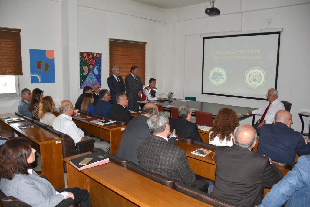 İtfaiye Müdürü Muhammet Ali Ateş, AFAD ile işbirliği çerçevesinde güncellenen ‘Kdz. Ereğli Belediyesi Acil Afet Yardım Planı’nı sundu.
