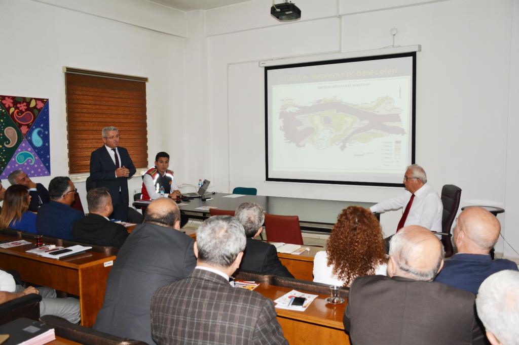 Başkan Halil Posbıyık sunum öncesinde yaptığı değerlendirmede, her türlü afete karşı mevcut durumun ve hazırlıkların gözden geçirildiğini söyledi. Posbıyık “Deprem durumunda nasıl bir hareket planımız olmalı, toplanma alanlarımızın durumu, ön hazırlıklarımız, güçlendirilmesi gereken binalar varsa tespiti ve verilecek destekler gibi konuları ele almak için bu toplantıyı gerçekleştiriyoruz" dedi.