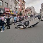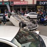 İki araca çarptı takla attı