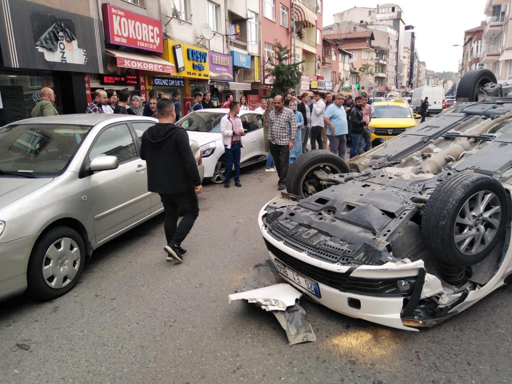 Zonguldak’ın Ereğli ilçesinde sürücünün direksiyon hâkimiyetini kaybettiği otomobil, park halinde ki iki otomobile çarptıktan sonra takla atarak durabildi.
