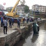 Park halindeki araç ırmağa uçtu