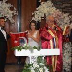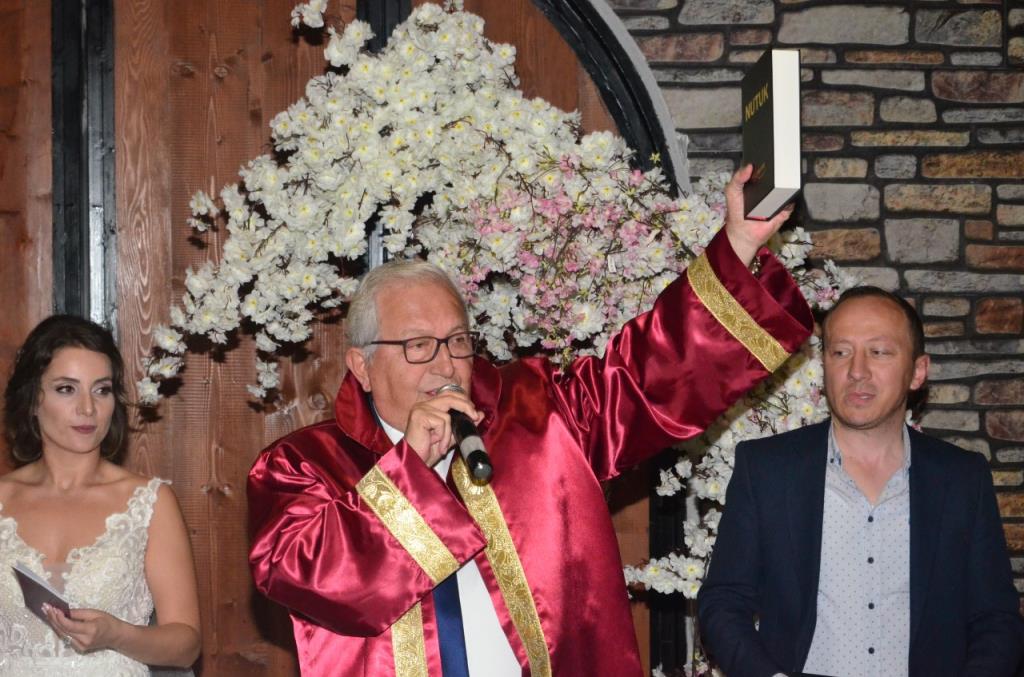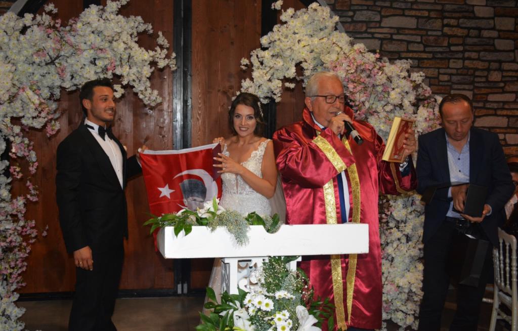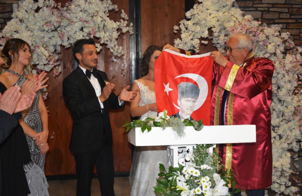 Belediye Başkanı Halil Posbıyık, nikahını kıydığı çiftlere Atatürk resimli Türk Bayrağı, Türkçe Mealli Kur’an-ı Kerim ve Nutuk hediye etti.