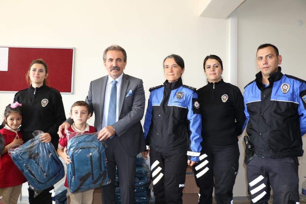Polislerden çocuklara çanta ve kitap