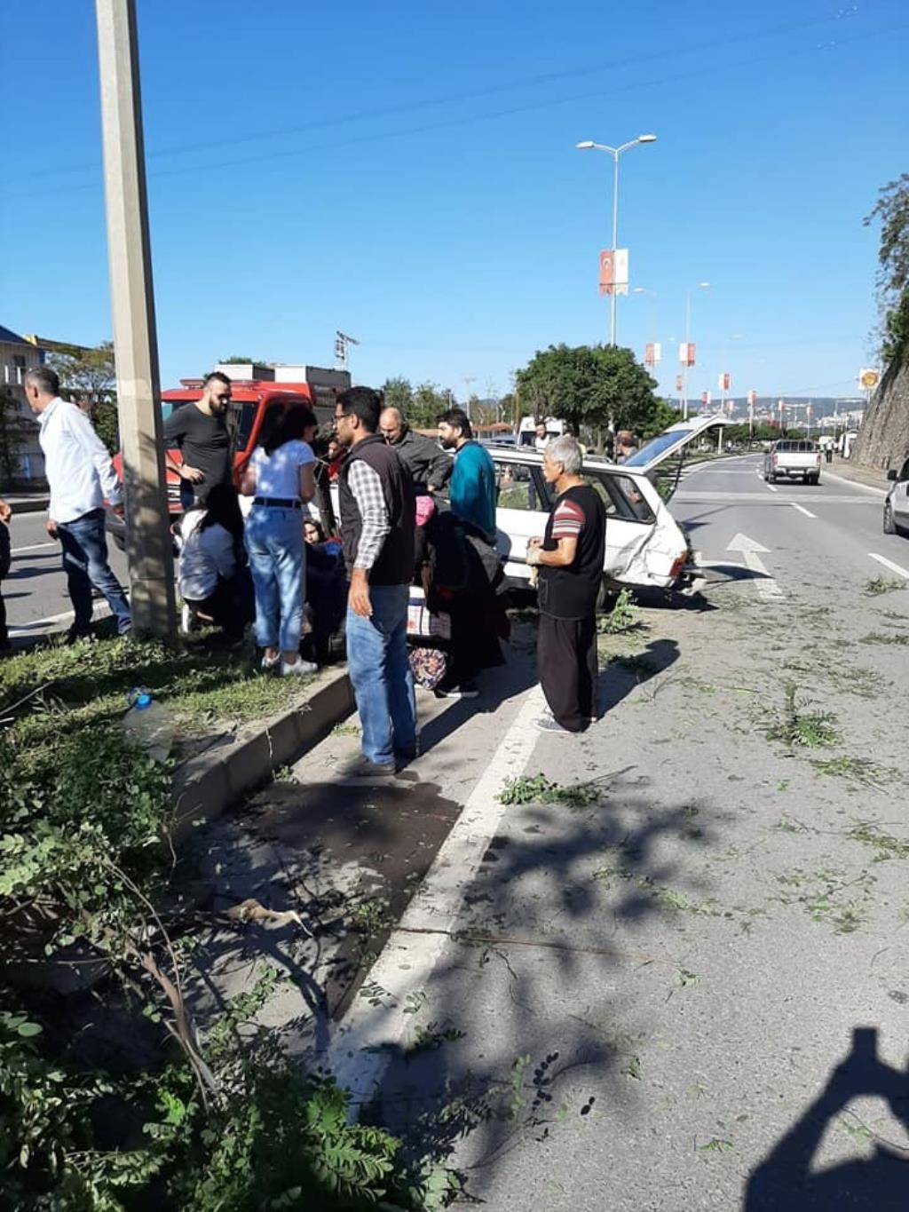 Zonguldak’ın Ereğli ilçesinde meydana gelen trafik kazasında aynı aileden ikisi çocuk yedi kişi yaralandı. Kaza yapan sürücünün oğlu olay yerine gelerek, ‘Ağlama baba siz iyisiniz demi? Araba önemli değil.’ diyerek ağlayan babasını teselli etti. Yaralılar olay yerine gelen sağlık ekiplerinin ilk müdahalesinin ardından hastanelere kaldırıldı.