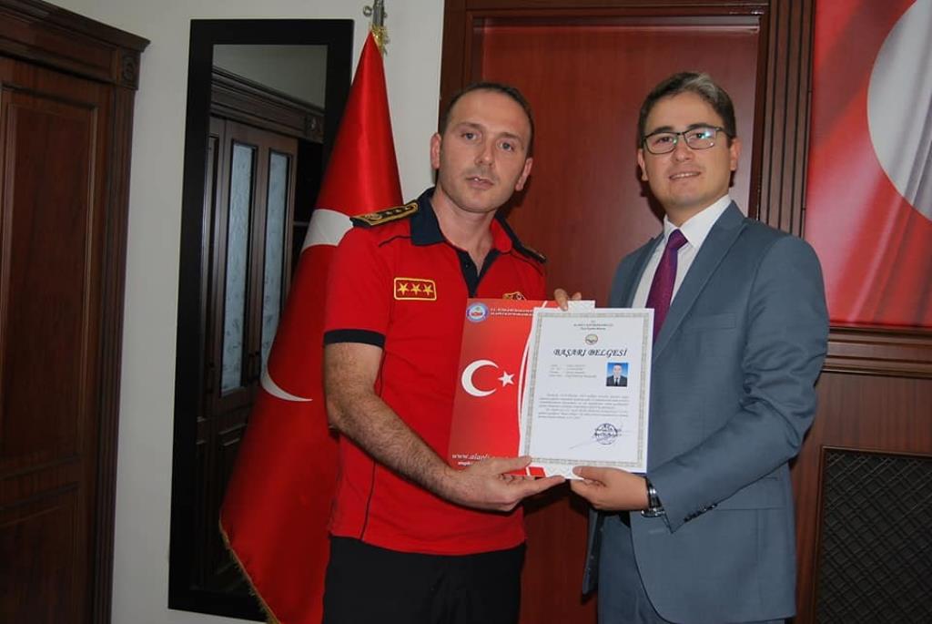 Alaplı Kaymakamı Emirhan Arıkan, 19-20 Haziran tarihlerinde meydana gelen sel felaketinde, üstün bir çalışma sergileyen Alaplı İtfaiyesi Müdür ve personeli, "Başarı Belgesi" ile onurlandırmak üzere makamında kabul etti .