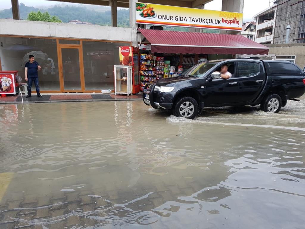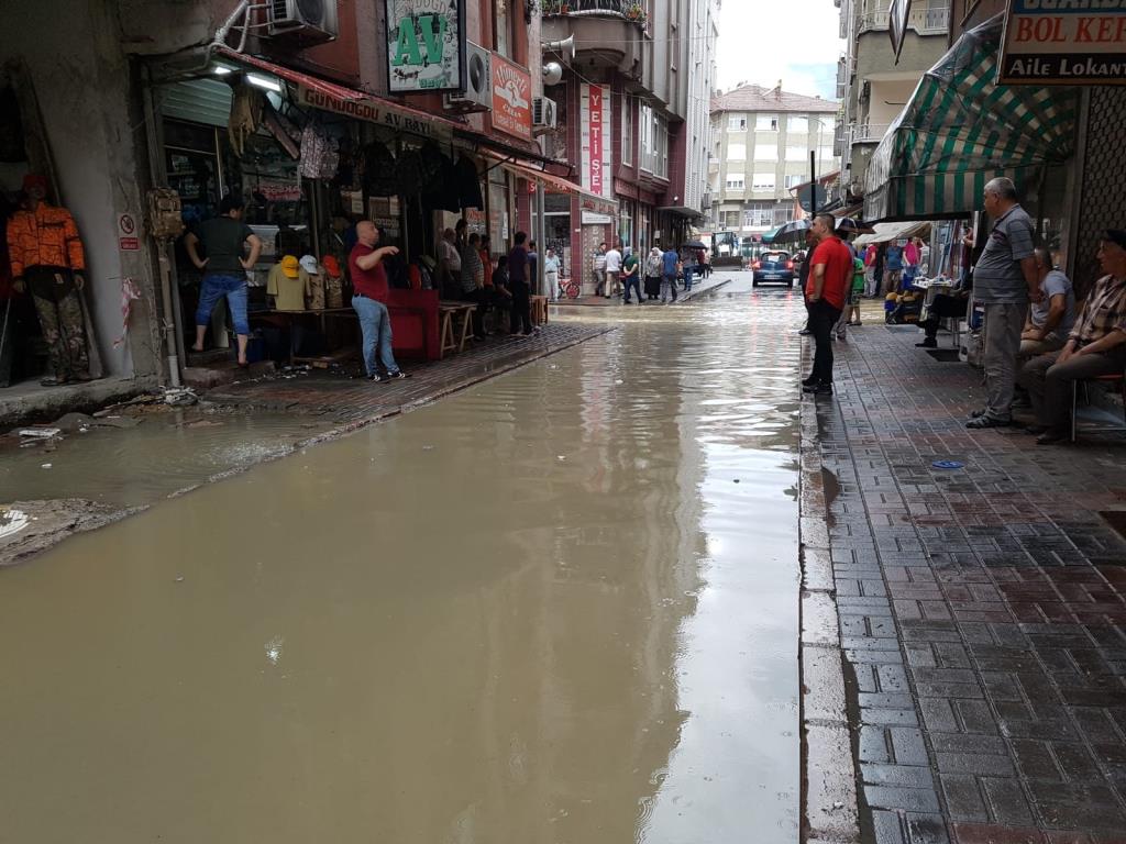 Devrek'te yaklaşık yarım saat süren şiddetli yağmur su basınlarına neden oldu.