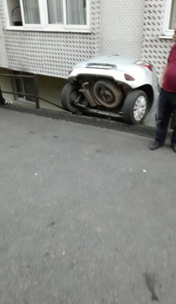 Kaza akşam saatlerinde Bağlık Mahallesi Eser Sokak Numara:34 önünde meydana geldi. İddialara göre 34 GL 7722 plakalı otomobil sürücüsü Fatma Velioğlu (38) aracını park etmek istediği sırada fren yerine gaza basınca apartman boşluğuna düştü. Apartman boşluğunda asılı kalan otomobilde sürücü Fatma Velioğlu (38) ve yolcu olarak bulunan annesi Nezaket Velioğlu (64) yaralandı. Kazada araç çekici yardımı ile apartman boşluğundan çıkartılırken yaralılar sağlık ekipleri tarafından özel hastaneye kaldırıldı. Yaralıların sağlık durumunun iyi olduğu öğrenildi. Savcılık kaza ile ilgili soruşturma başlattı.