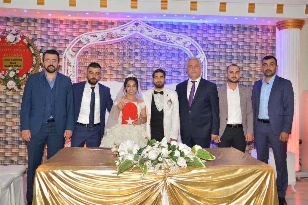 Baba Mehmet Gül’ün, kızı Esra’ya sarılarak duygulu anlar yaşadığının gözlendiği düğünde MHP İlçe Başkanı Demirtürk ile birlikte ilçe yönetim kurulu üyeleri ve Ülkü Ocakları yöneticileri yer aldı.