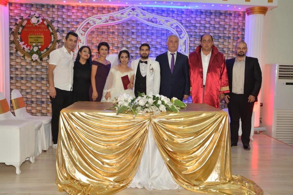 Salonu dolduran kalabalık davetlinin alkışları arasında salona giren Esra ile Volkan Akkurt’un nikahını, Gülüç Belediye Başkanı Gökhan Demirtaş kıydı. MHP İlçe Başkanı Rahman Demirtürk de, geleneği bozmayarak evlilik cüzdanını gelin Akkurt’a teslim etti. Başkan Demirtürk, ayrıca Gelin’e Türk Bayrağı’na sarılı Kur’an-ı Kerim hediye etti.