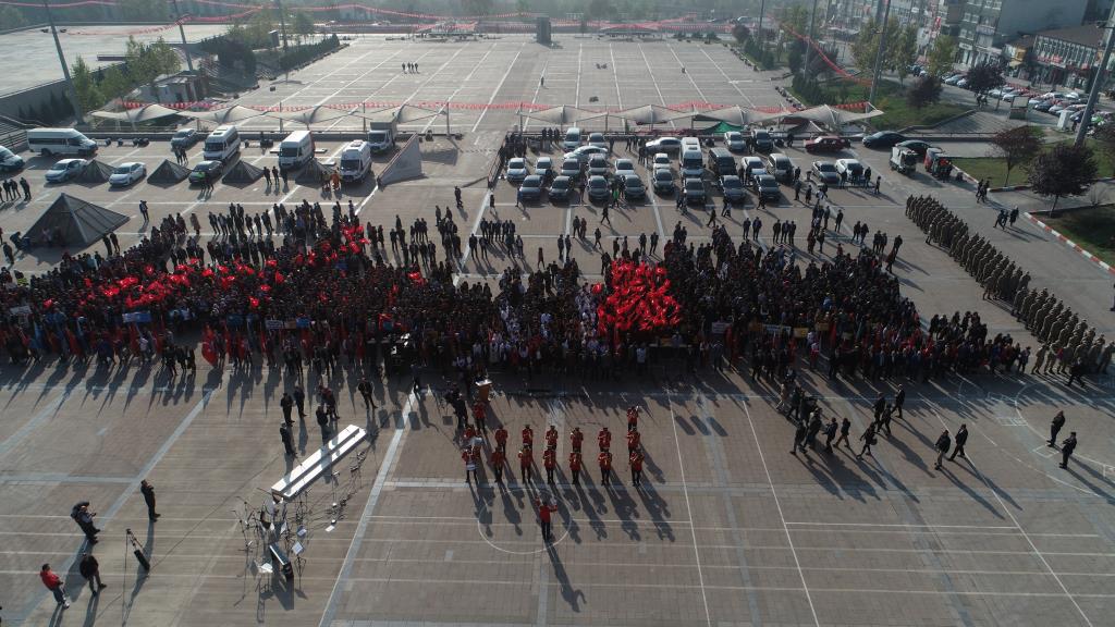 BARTIN (İHA) - Bartın’da 29 Ekim Cumhuriyet Bayramı kutlamaları kapsamında okul öğrencileri düzenledikleri koreografi ile Ay-Yıldız koreografisi oluşturdu.