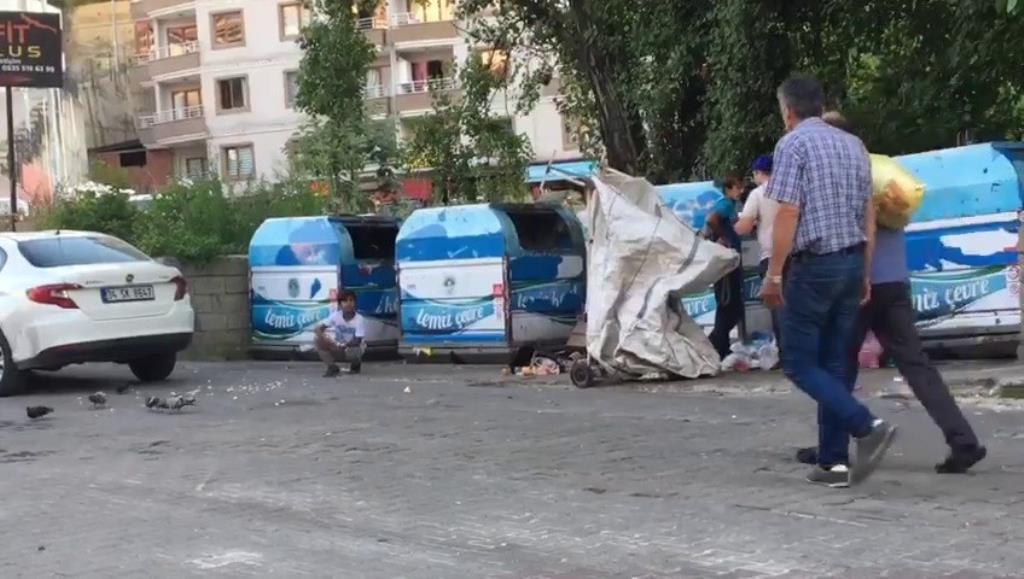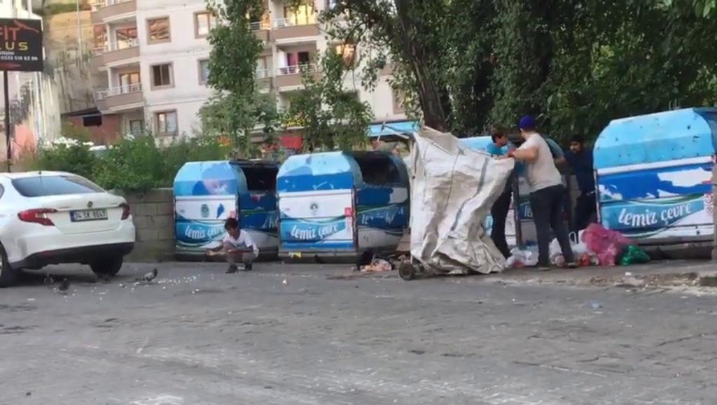 Zonguldak’ta çöp konteynerlarından plastik şişe ve kağıt toplayan çocuk insanlık dersi verdi.