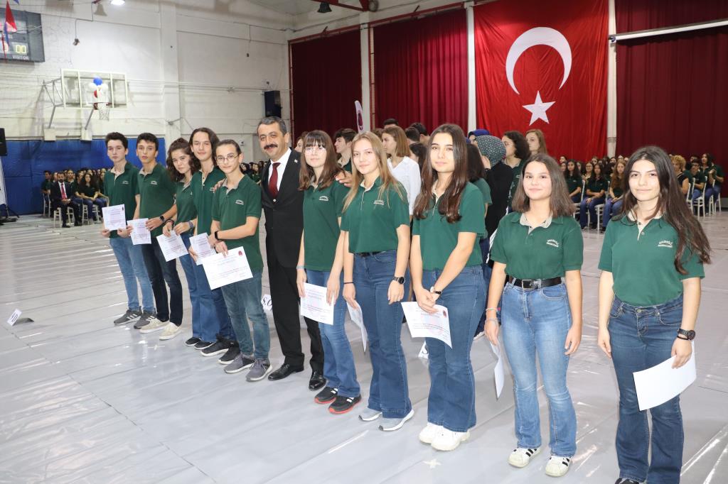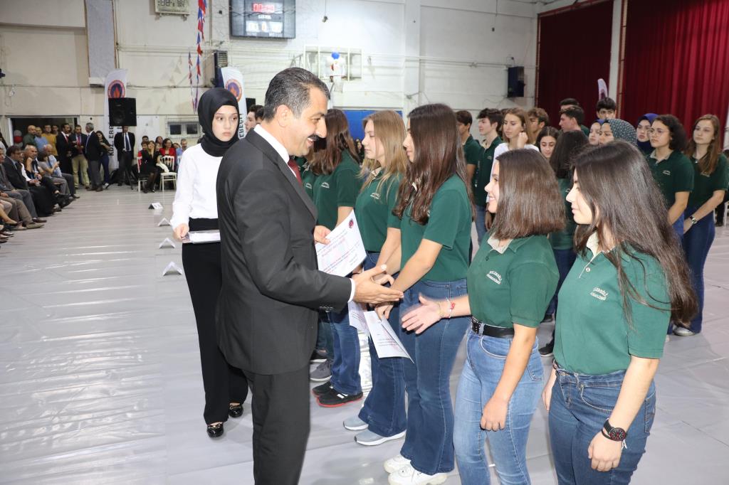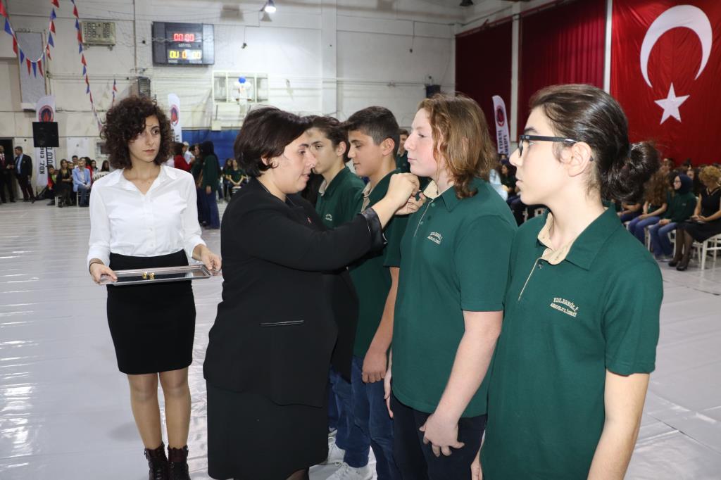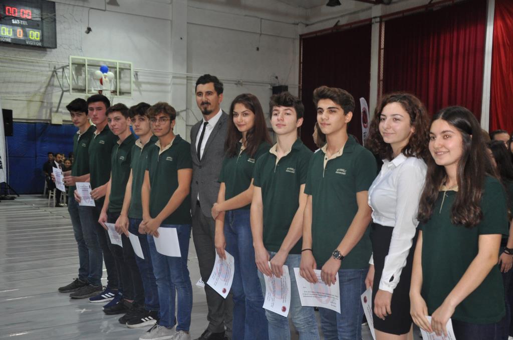Saygı Duruşu, İstiklal Marşı ve Okul Marşı ile başlayan tören; Okul Müdürü Sayın Selçuk ALTIN’ın konuşması, 2018-2019 EĞİTİM-ÖĞRETİM YILINDA derece alan öğrencilere ödüllerin verilmesi, KEALMED adına Sayın Ayşen MARTİ UZUNÇELEBİ’nin konuşmasının ardından, rozetlerin takılması ile devam etti ve Okul öğrencilerinin hazırladığı müzik dinletisi ile sona erdi.