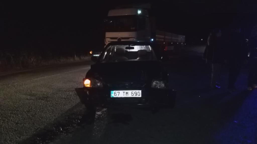 Kaza 18.50 sularında Mevrealtı mevkii Organize Sanayi bölgesinde meydana geldi. İddiaya göre Organize sanayi bölgesinden çarşı istikametine giden S.Ö. nün kullandığı 67 TM 690 plakalı otomobil, yol kenarında park halinde iken aniden yola çıkış yaptığı iddia edilen M. T. nin (34) kullandığı 67 AAR 995 plakalı otomobille çarpıştı. Kazada Sürücü S. Ö. ve eşi N. Ö. ile diğer sürücü M. T. yaralandı. Yaralılar sağlık ekiplerinin olay yerinde yaptığı ilk müdahalenin ardından devlet hastanesine kaldırıldı. Yaralıların sağlık durumlarının iyi olduğu ve tedavilerinin devam ettiği öğrenildi. Sürücülerden M.T. nin 61 promil alkollü olduğu öğrenildi. Kaza ile ilgili soruşturma başlatıldı.
