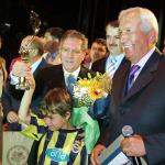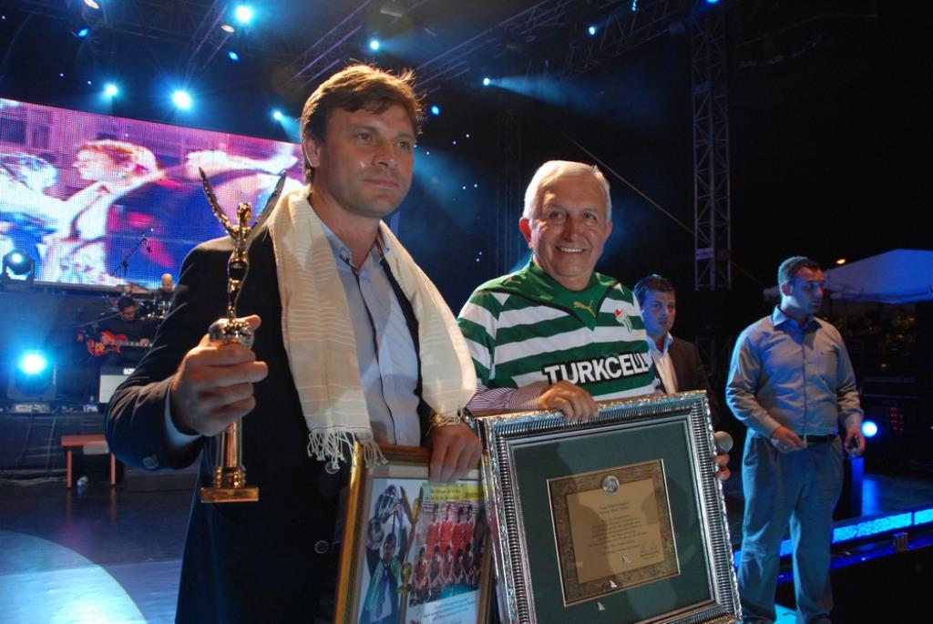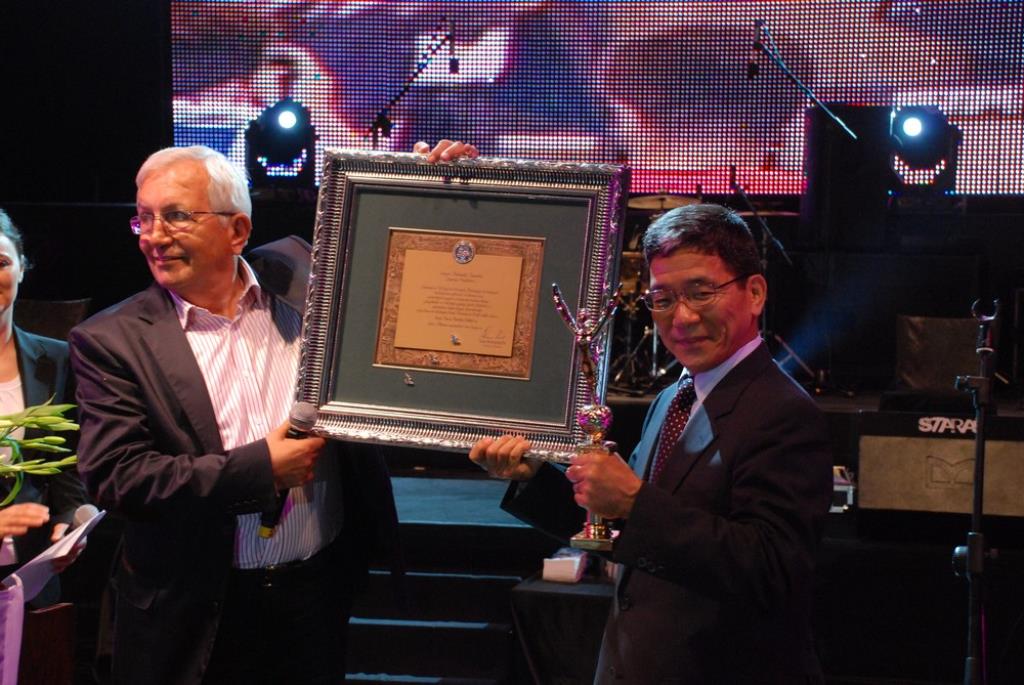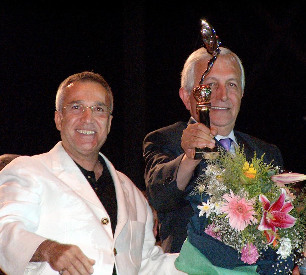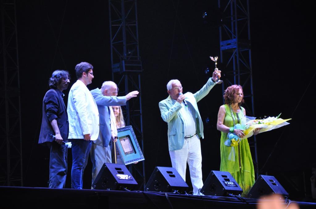 TURGUT ÖZAKMAN: Bu ödüllerimizin arkası kesilmedi ve "Şu Çılgın Türkler" kitabının yazarı Rahmetli Turgut Özakman’ı yüz binlerce seveninin önüne çıkarıp Karadeniz Ereğli festival sahnesinde kendisine Sevgi, Barış,Dostluk Ödülü’nü verdik.
