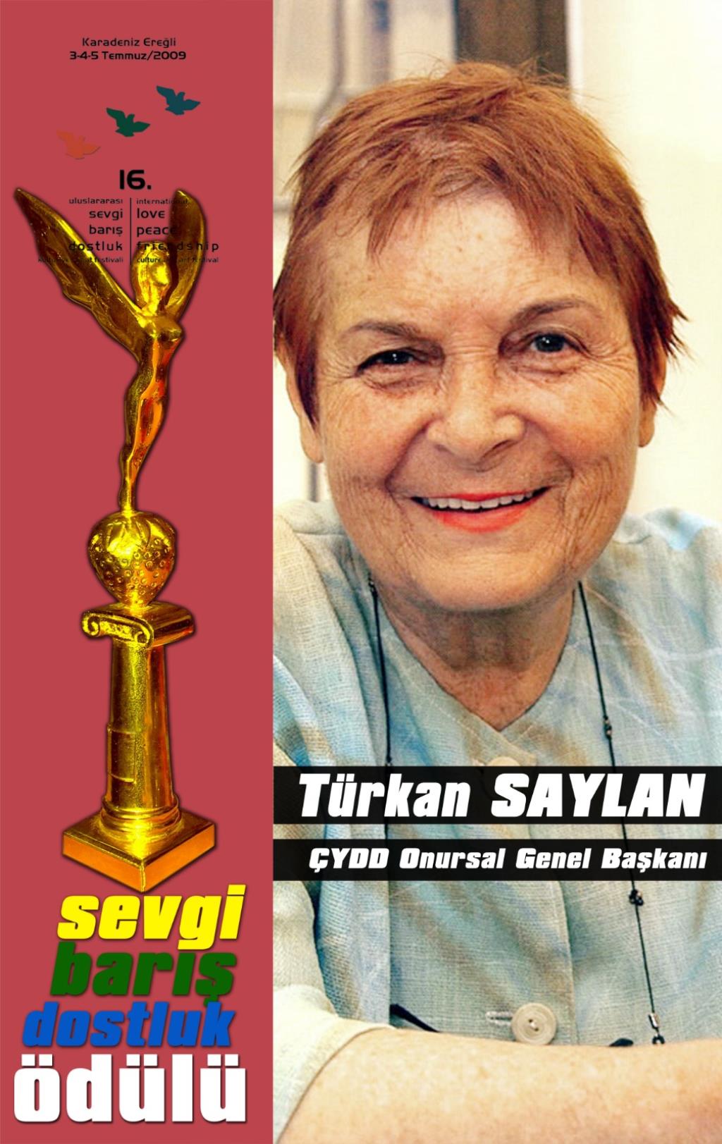 TÜRKAN SAYLAN: Çağdaş Yaşamı Destekleme Derneği Başkanı, Onursal Genel Başkanı Sayın Türkan Saylan’a yine Sevgi, Barış,Dostluk Ödülü’nü takdim etmekten büyük mutluluk ve onur duyduk. Onu da rahmetle anıyoruz.