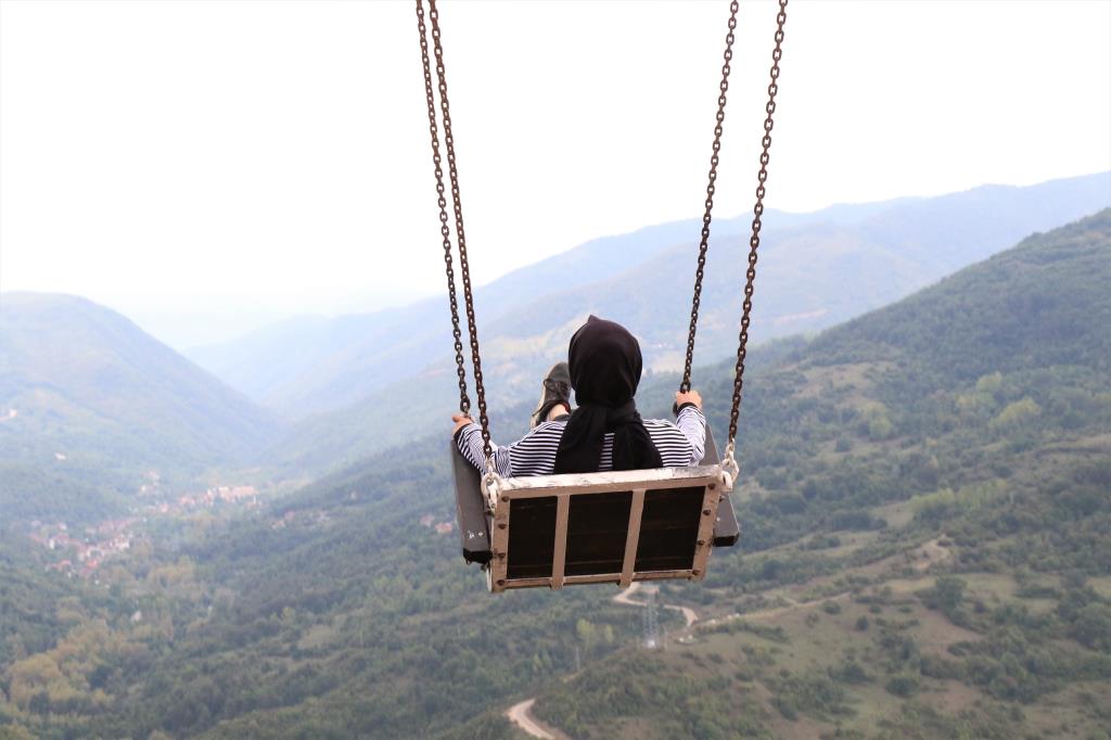Vatandaşların 5 metre yükseklikteki orman manzaralı salıncağa ilgisi yoğun oldu
