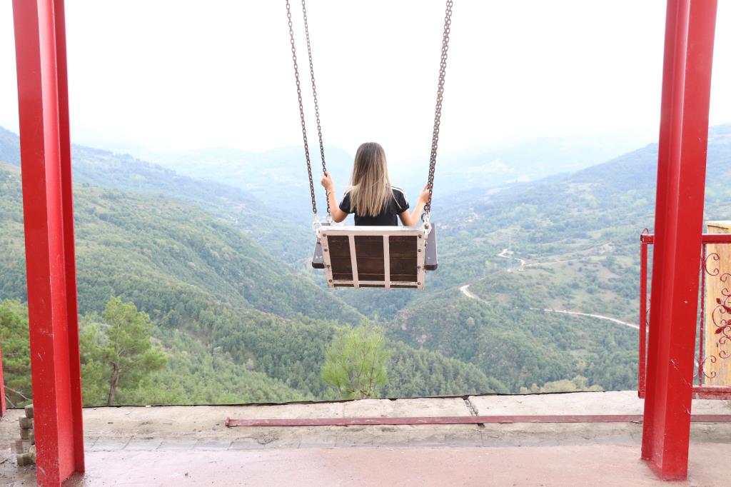 KARABÜK (İHA) - Karabük’ün doğasıyla meşhur ilçelerinden olan Yenice’de bulunan Ihlamur Seyir Terası’nda 5 metre yükseklikte kurulan salıncak vatandaşlar tarafından yoğun ilgiyle karşılandı.