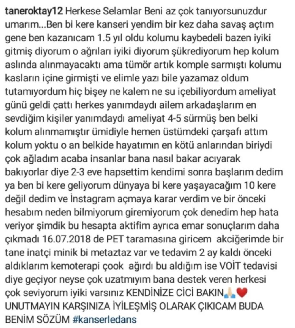 Taner Oktay, Ereğli’ de 17 yaşında kemik kanserine yakalanmış ve yaklaşık 1 sene süren tedavi sonrasında sağ kolunda oluşan Tümör ’den dolayı kolunu kaybetmiş, iyileşmeye giden süreçte hastalığın yeniden nüksetmesi ve Akciğer’ e sıçramasının ardından 2 sene süren yaşam savaşını kaybetti.