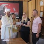 İlçe Müftüsü Ayhan Ermiş, Müslüman olan Maritta Kristina'ya, “İnşallah bütün günahlarınızdan arınarak cennetle müjdelenenlerden olursunuz” dedi.