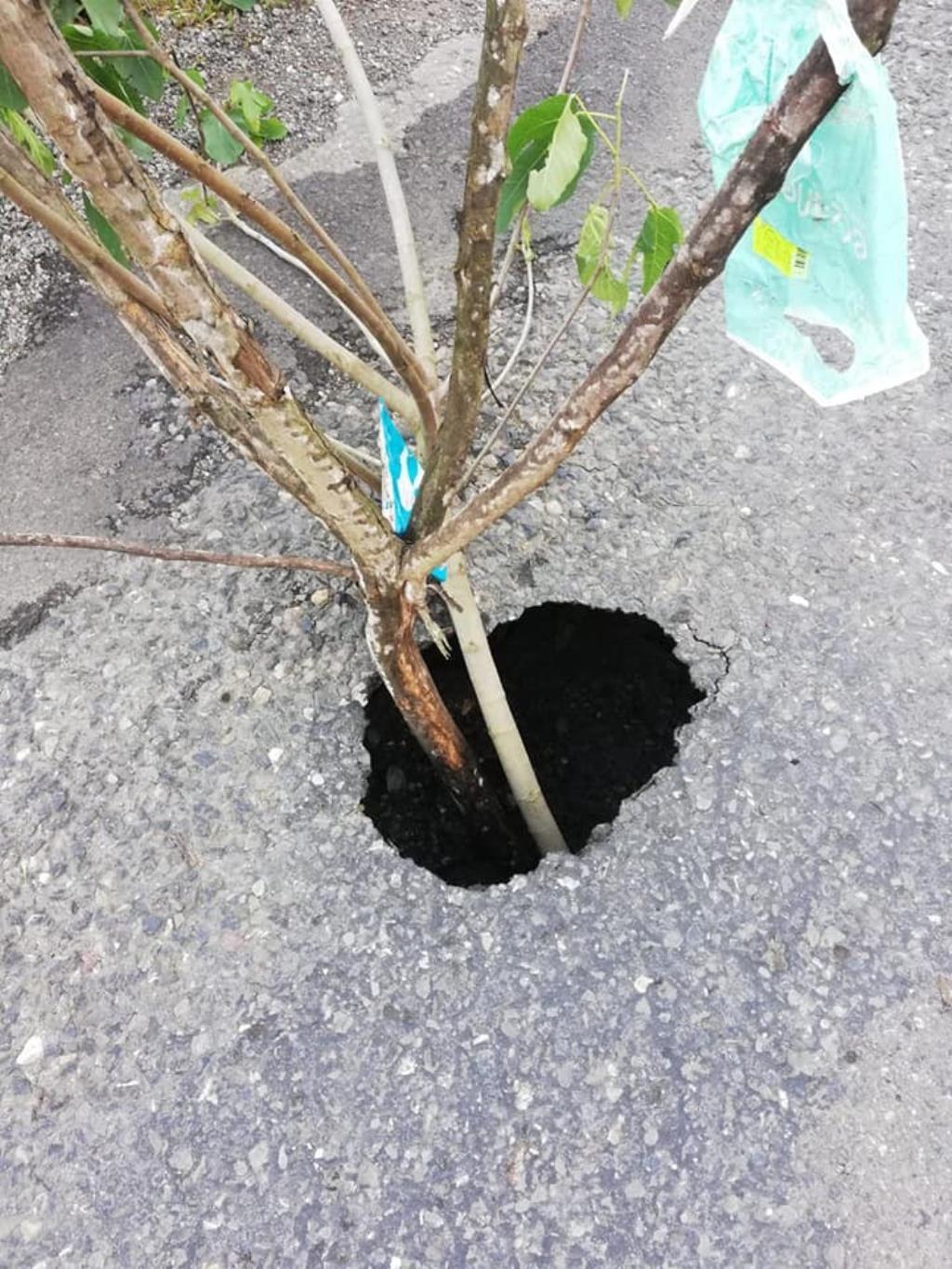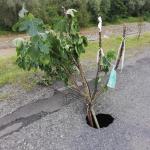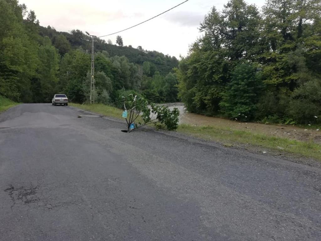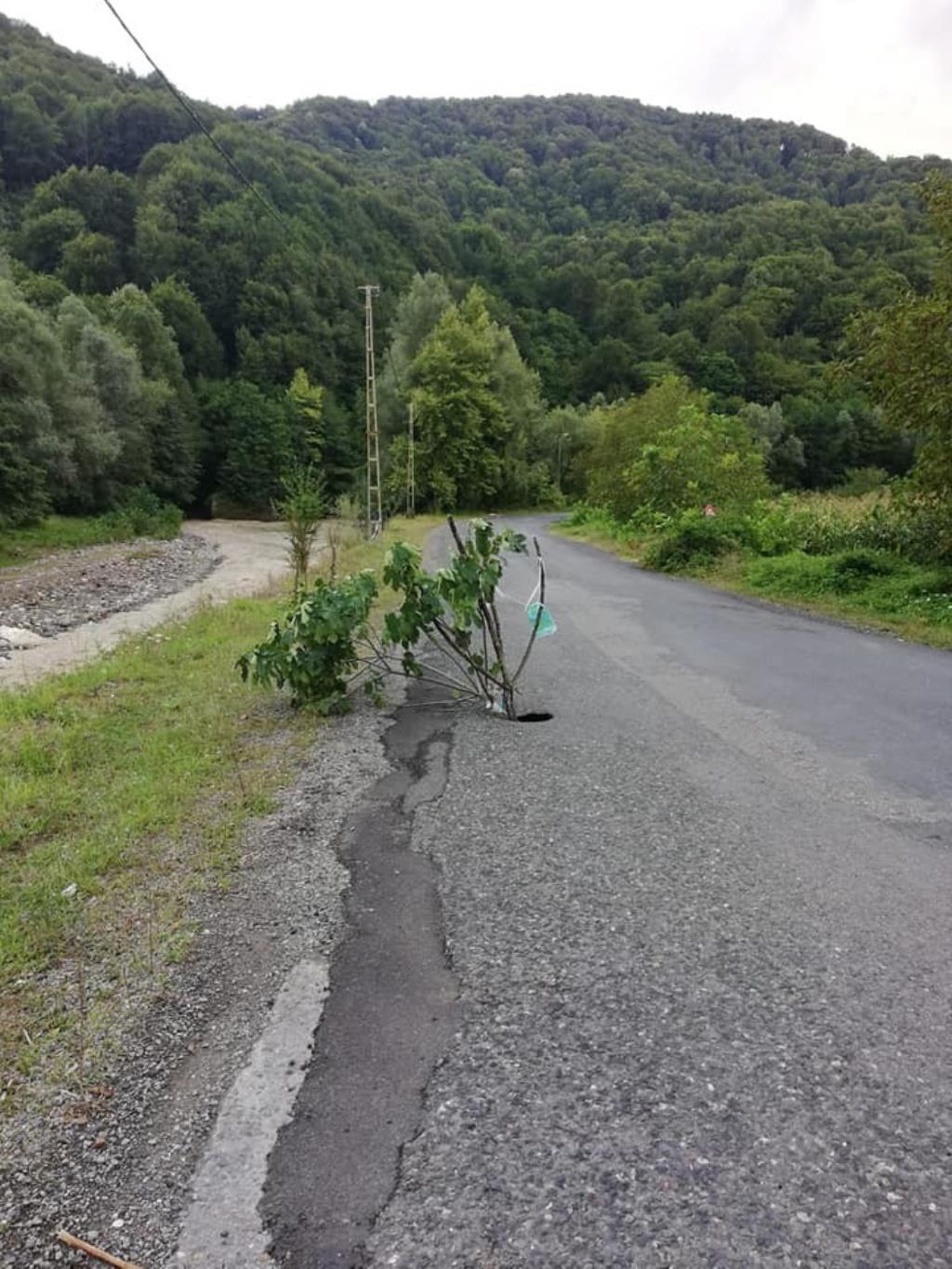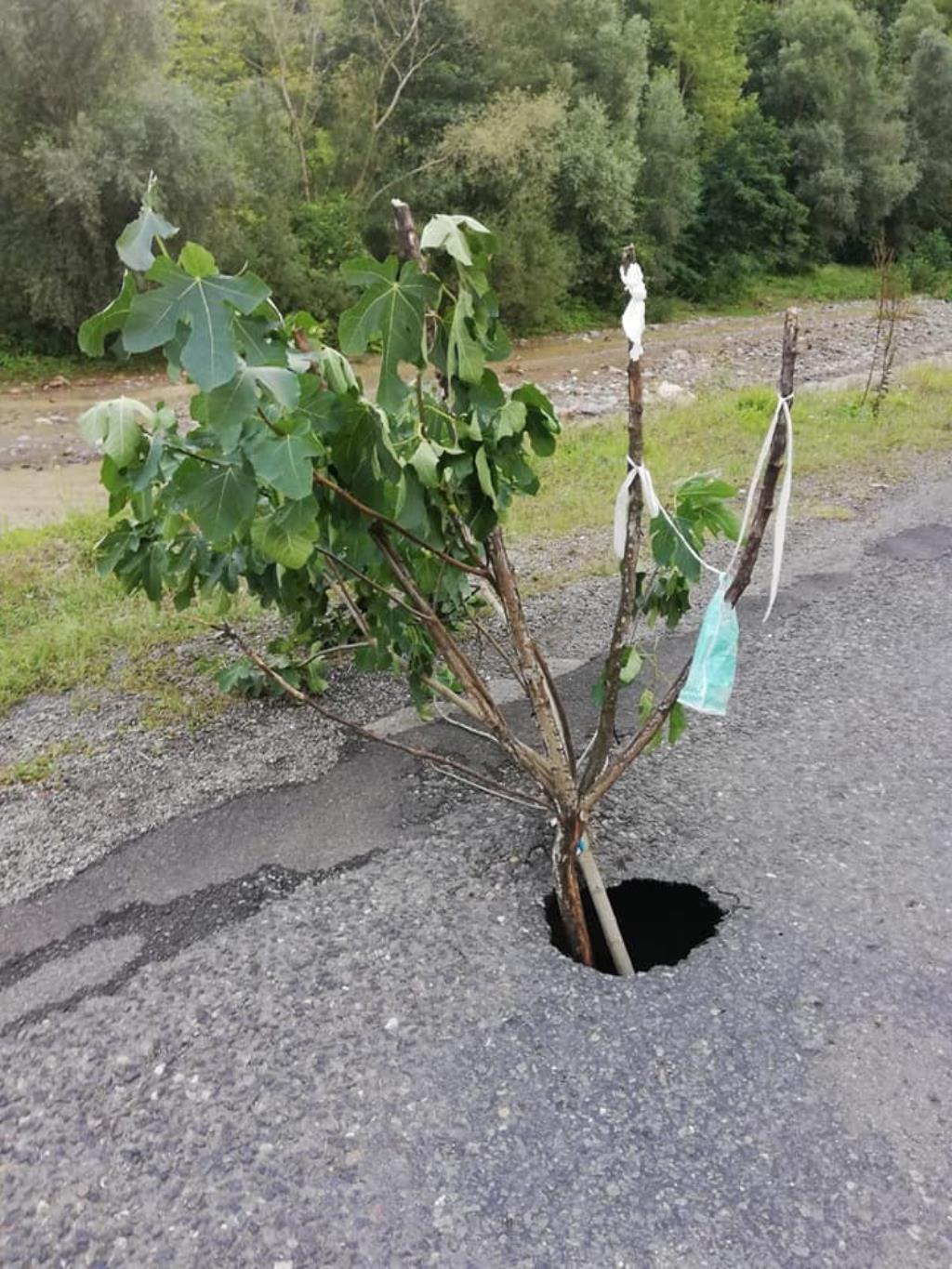 Zonguldak’ın Alaplı ilçesinde asfaltta oluşan çukur için köylüler örnek davranış sergileyerek incir ağacı dikti.