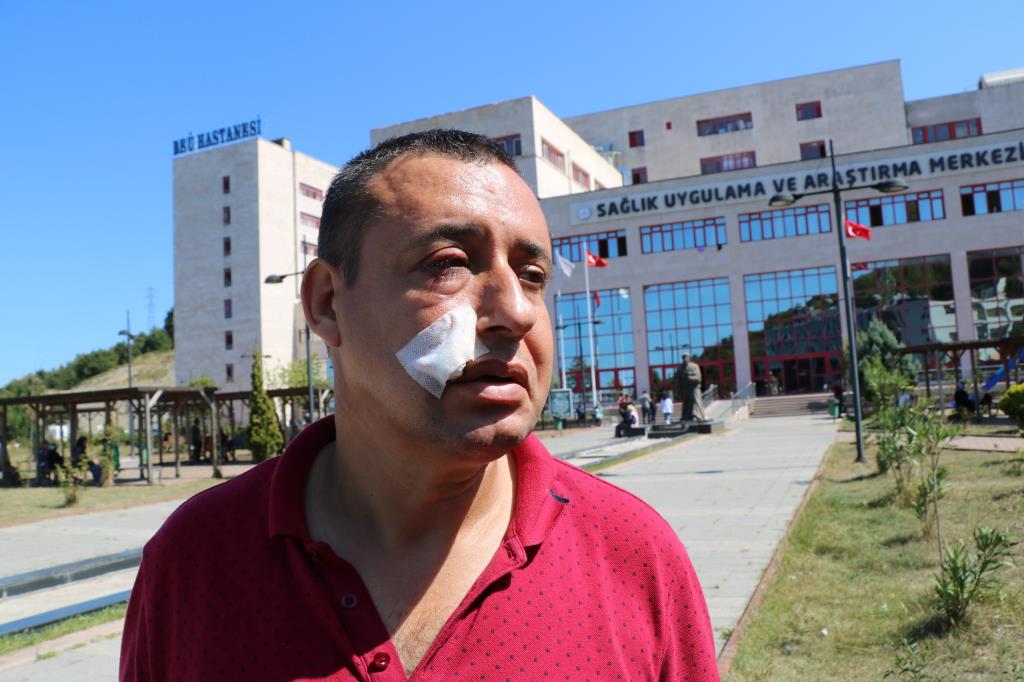 Gazi olduğunu söylemesine rağmen yüzde 98 engelli yeğeninin yanında işçiler tarafından darp edildiği belirten gazi Hasan Özdemir, "Kardeşimin sakat çocuğu vardı. Yüzde 98 özürlü. Onu okulunu okumak için liseye kaydını yaptırmaya getirmiştik. Orada da bir yol çalışması varmış. Yol çalışması belediyenin aşağı taraftaymış. Bizi çevirdiler. Un fabrikasının oradan doğru aşağıya indik. Yolda herhangi bir şey yoktu. Biz kayıt yerine gittik. Liseye kayıt ettirdik. Oradan dönerken az bir ilerisine araba çekmişler. Dönmeye çalıştık. Bir de baktık. 10 kişi yanımızda. Bize 'burada ne işiniz var' dediler. Döndüğümü gideceğimi söyledim. Oraya girmemin yasak olduğunu söylediler. Arabada otururken adam bana yumruk vurdu. Camım açıktı. Biri vururken diğeri de vurdu. Bu darbeyi aldık. Onların hepsi tuttu öbürü de vurdu. Hadi beni bırak yüzde 90 sakat çocuk var arabada. Terörle mücadele gazisiyim. 1992 yılında Kahramanmaraş'da gazi oldum. Sol taraftan darbe aldım. Sol tarafım tamamen felç. Hiç his yok. Sağ tarafa da onlar vurdu. Şu an şikayetçiyim. Gözün bir tanesi zaten görmüyor. Bir tanesi de şimdi kör oldu. Şu anda plastik cerrahiye gönderdiler. Onların vurmasından damarlarda çatlaklık var. Göze vuruyor. Göze yüzde 80 zarar vereceğini söylüyor. Bu gün yada yarın ameliyat yapacaklar. Zaten kurumlar da biliyor. Sayın Valimize de ilettik. İlgilenildi, kurumlar bizim imdadımıza yetişti. Ambulansla hastaneye gittik. Kanun neyse ilgileniliyor. Ama davacıyım. Davamdan da vazgeçmiyorum. Kesinlikle davacıyım" dedi.