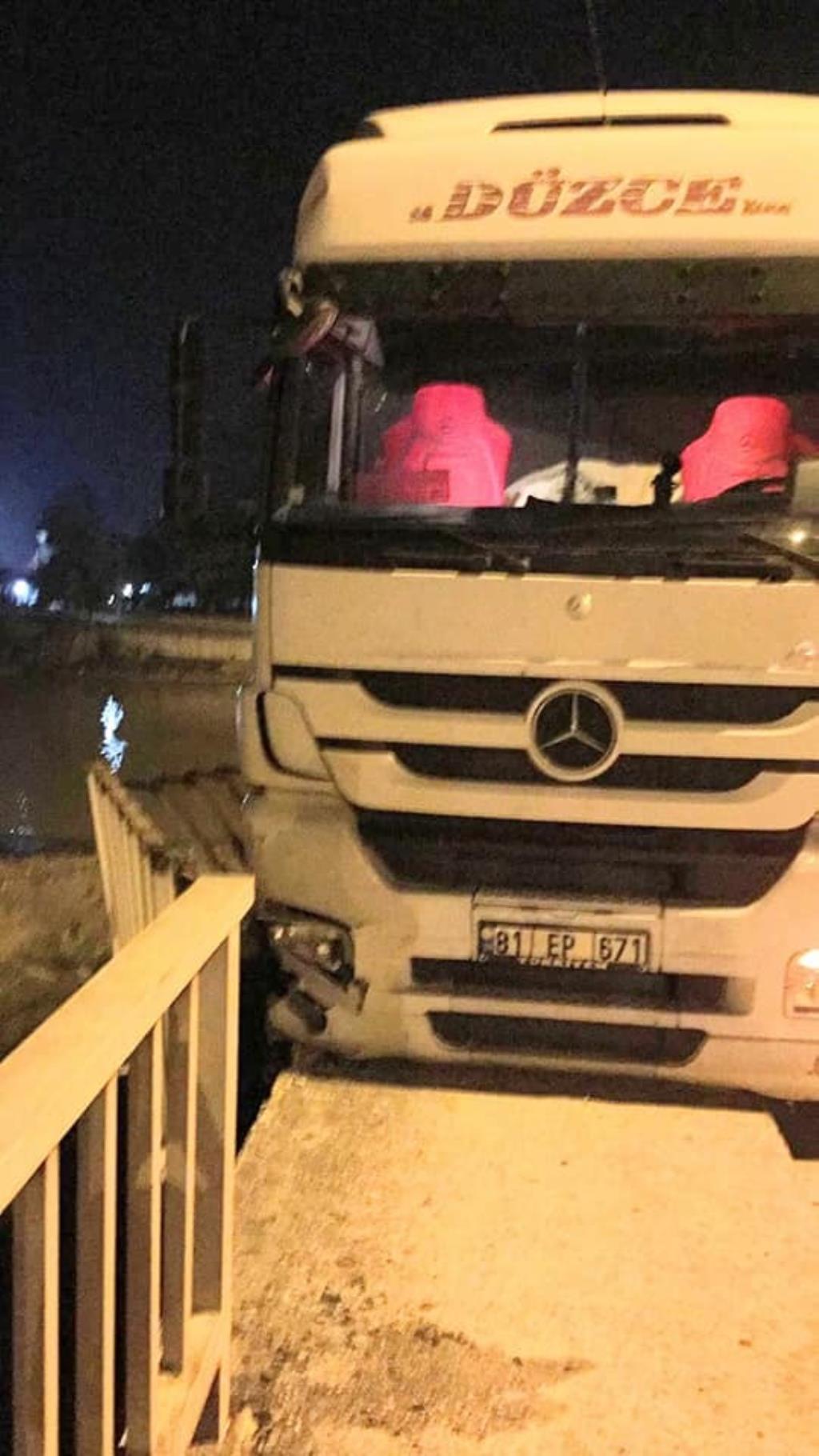 Olay akşam saatlerinde Alaplı köprüsünde meydana geldi. İddiaya göre 81 DM 207 plakalı DORSE 81 EP 671 plakalı TIR sürücüsü direksiyon hâkimiyetini kaybederek yol kenarındaki korkuluklara çarparak durabildi. Kazada yaralanan olmazken, çevredeki vatandaşlar kaza ile ilgili faciadan dönüldü yorumunu yaptılar. Kaza nedeniyle kapanan yol, aracın kaldırılma ile birlikte yeninden normale döndü.