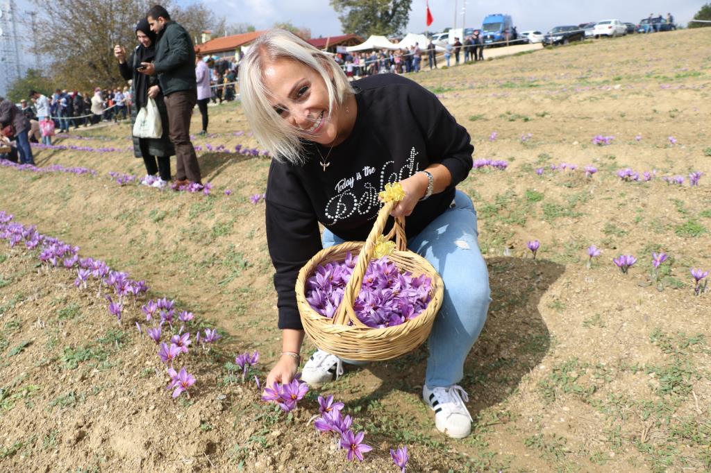 Çok sayıda ziyaretçinin safran tarlasına geldiğini ifade eden Yılmaz, "Herkes çiçek topluyor, kokluyor, özeliklerini, ne işe yaradığı öğreniyor. Mevsim olarak çok iyi gidiyoruz çok da yüksek. Şuan en pik dönemi o kadar çok" dedi.
