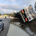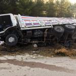 Yoldan çıkan kamyon devrildi: 2 yaralı