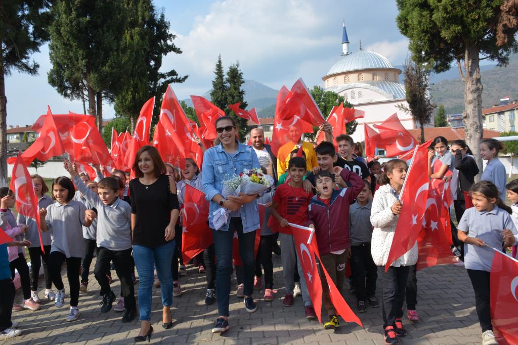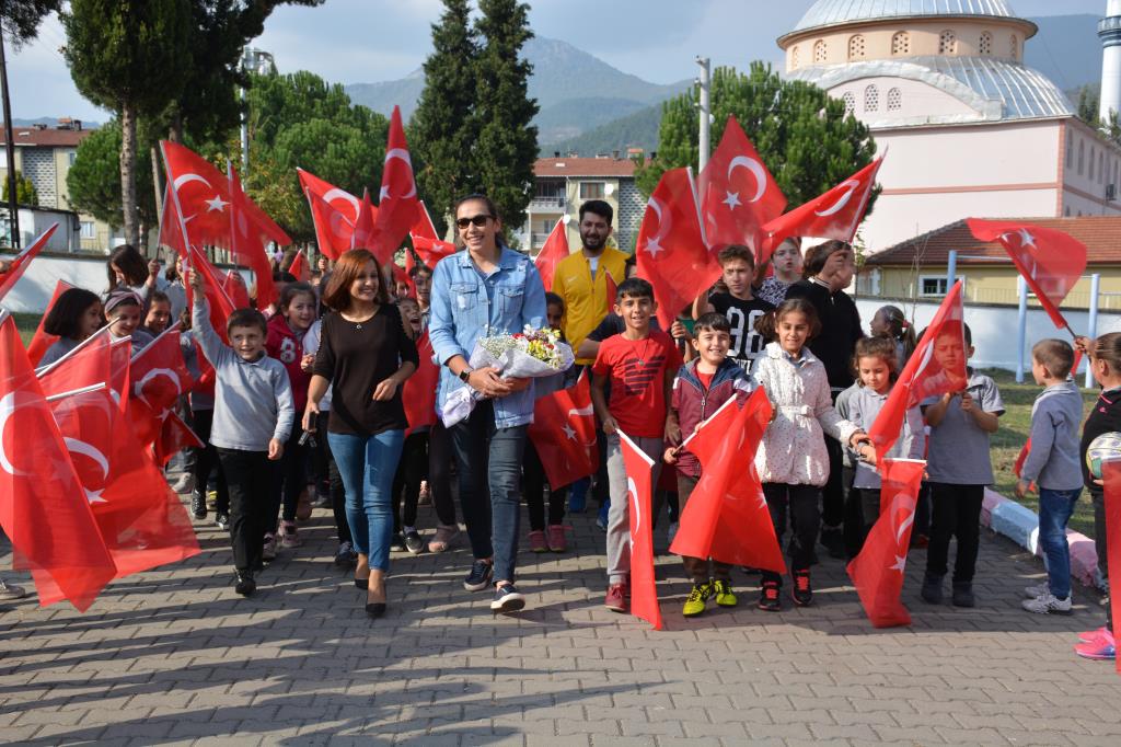 Söyleşi sonrası Elif Güneri, Özal Mahallesi ilkokulu ve Turgut Özal Ortaokulu’nda görevli öğretmen ve öğrencilerle hatıra fotoğrafı çektirdi.