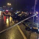 Kayganlaşan yolda trafik lambalarına çarparak durabildi