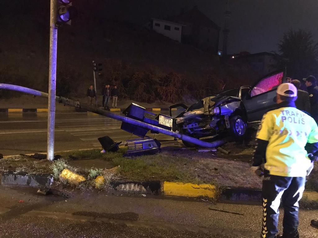 Kaza, gece saatlerinde Kurtuluş Mahallesi Sanayi Kavşağında meydana geldi. Safranbolu istikametinden Karabük’e seyir halinde olan Mustafa A. yönetimindeki 43 SL 871 plakalı otomobil, yağmur yağışı sonrası kayganlaşan yolda sürücüsünün kontrolünden çıkarak orta refüje çıkarak trafik lambasına çarptı. Çarpmanın etkisiyle trafik ışığı devrilirken, otomobilde bulunan Remziye A. (73) ve Azra Ece A. (3) yaralandı. Yaralılar, sağlık ekiplerince Karabük Eğitim ve Araştırma Hastanesine kaldırılarak tedavi altına alındı.