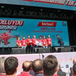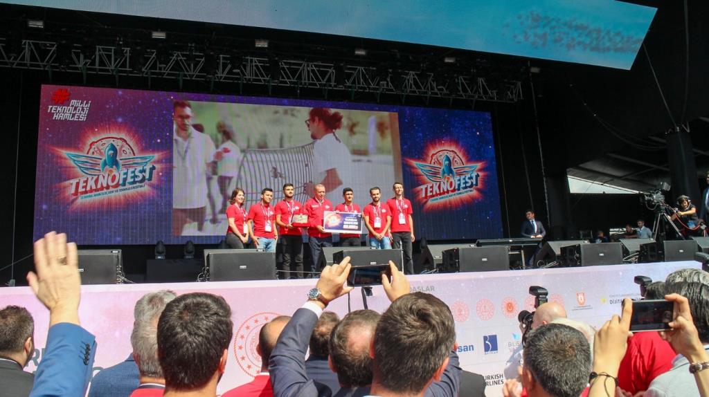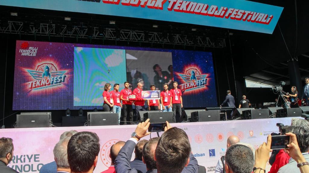 Türkiye’nin en büyük teknoloji yatırımlarından biri olan TEKNOFEST’te festival alanındaki standları ziyaret eden Cumhurbaşkanı Erdoğan, festival alanını gezmesinin ardından hazırlanan platforma çıkarak ziyaretçilere hitap etti. Cumhurbaşkanı Erdoğan konuşmasının ardından TEKNOFEST 2019 kapsamında yarışıp dereceye giren, Grizu-263 Uzay Takımının da aralarında bulunduğu, öğrencilere tek tek ödüllerini verdi.