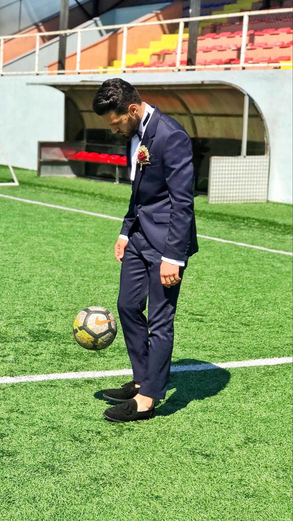 Bayatspor futbolcusu Fırat Çınar, eşi Jale Çınar ile birlikte düğün töreni sonrası soluğu yeşil sahada aldı. Düğün sonrası sahaya giren gelin damada şut çekti.