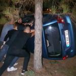Yoldan çıkan otomobil takla atarak ağaçlara takıldı